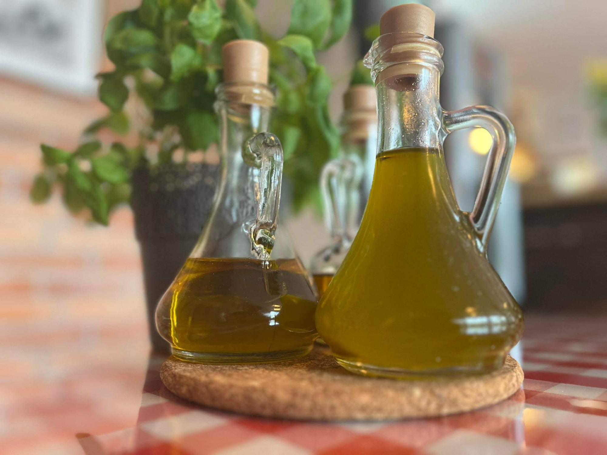 Oliwa z oliwek, czosnek, peperoncino, świeża natka pietruszki, wykończona mieszanką wyselekcjonowanych ziół i przypraw -