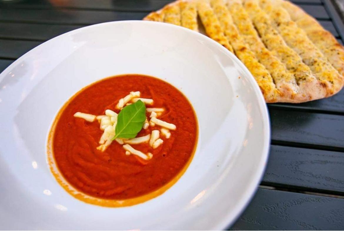pomidor, mozzarella di Buffala, oliwa extra virgin, oregano, świeża bazylia, podawana z pieczywem z własnego wypieku